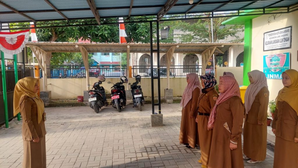 Apel pagi yang dilaksanakan di Halaman Kantor Kelurahan Landasan Ulin Tengah yang di pimpin oleh Sekretaris Kelurahan.